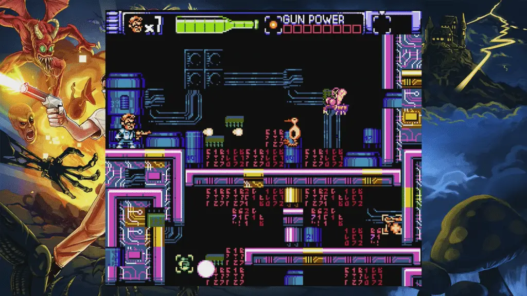 Every level is full of pop culture references and parodies of level design flaws from the 80s, like blind jumps, cheap deaths, and respawning enemies.