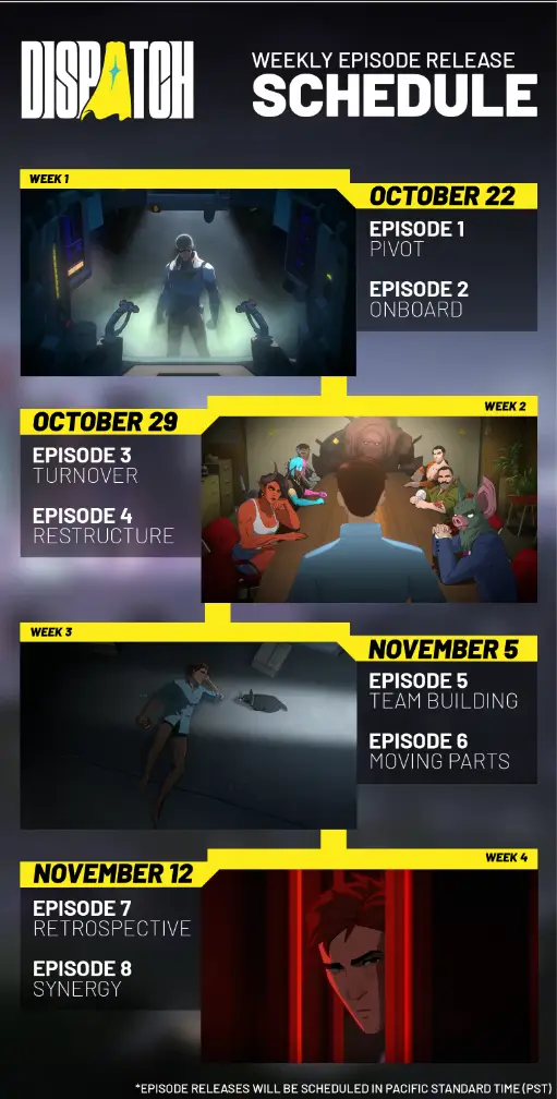 Dispatch episodes 1-4 are currently available on PlayStation 5 and Steam. You only need to purchase Dispatch once to gain full access to all 8 episodes.