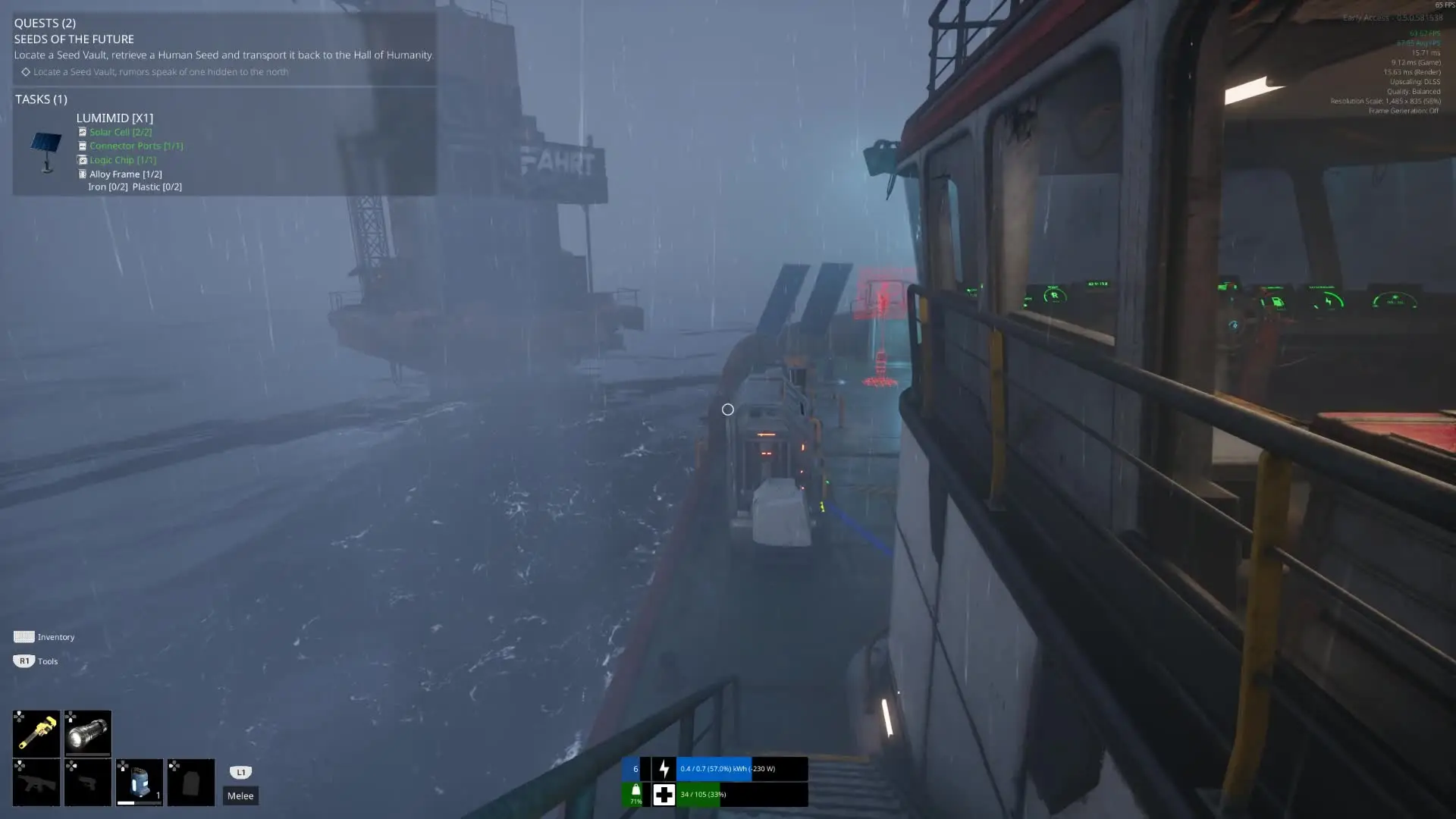 Now when we finally get past the world, I have to admit that this game is fundamentally a very relaxing survival game with some really satisfying elements at it’s center. The survival aspects of the game make themselves known from the tutorial all the way towards the end game. At its core, this gameplay loop can be simplified as a base building survival game with in-depth crafting and resource management mechanics. As I mentioned in the story section, the centerpiece of this is your freighter. It is your job to not only keep the lights on through providing fuel and power but also turn it into a mobile base that you can run your whole production line through. Throughout your journey, you are going to be running into hundreds, if not thousands of pieces of junk and other remnants of humanity that can all be turned into valuable resources using the machines on your ship. The best part of the whole experience is the fact that literally every piece of metal, plastic, rubber, or junk is salvageable. If the Caretaker can pick it up or put it in his inventory, it can be turned into resources to use.