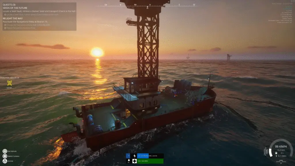 Placing the various different machines from solar panels to wind turbines and other resource producing tools feels natural when you’re actually building your base. You can make it as neat or messy as you want and the pipe system that connects the ship to the resource creating machines makes it so you can get really intricate with your designs. My own ship for example had all its electricity producing machines at the front end (My solar panels and wind turbines), while my more specific production lines were placed at rear of the ship such as diesel and freshwater production. Like I said, the ship really is the focal point of the whole experience and I really loved it once I spent a few hours with it. The best part about the whole system they have in place is that every resource you can make, from the most simple to generate to the most complex, has a use. It really does add to this glaring idea that the world has ended and you are meant to do whatever it takes to allow the human race to survive – pillage, reuse and rebuild. The crafting loop is simplistic and easy to learn, the resource management is a wild ride, and the joy attached with getting your ship up and running is a trip I’d be willing to take over and over again.