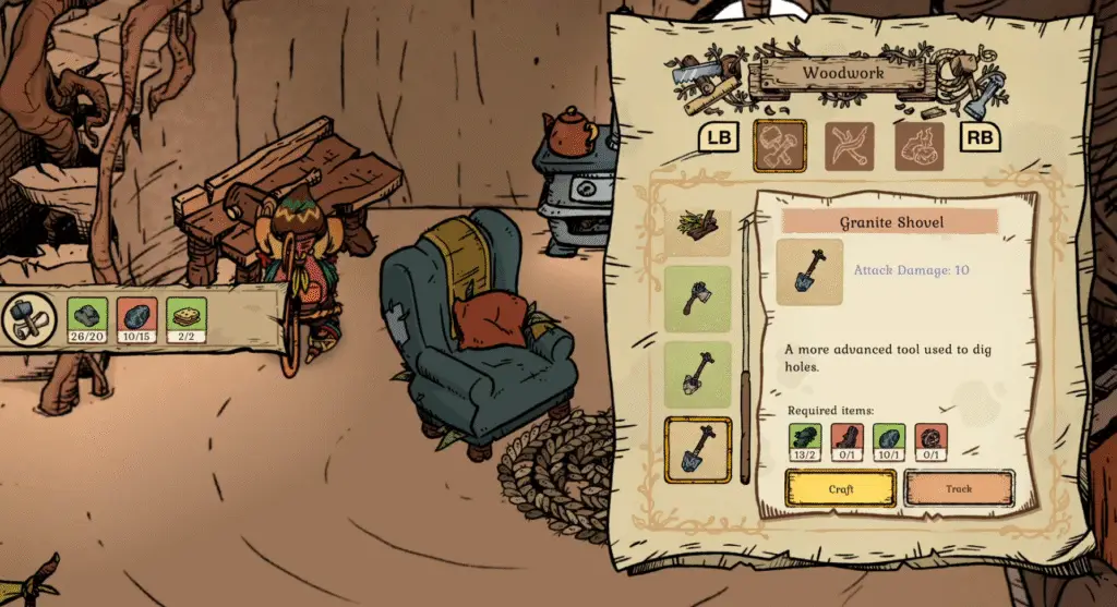 Gnawtusk is a forgetful squirrel, but also an appreciative one, giving you the blueprint for the second shovel in exchange for your help. Their first quest is Find Stashes, and involves you using your shovel at two specific dig spots in Shadow Pines.