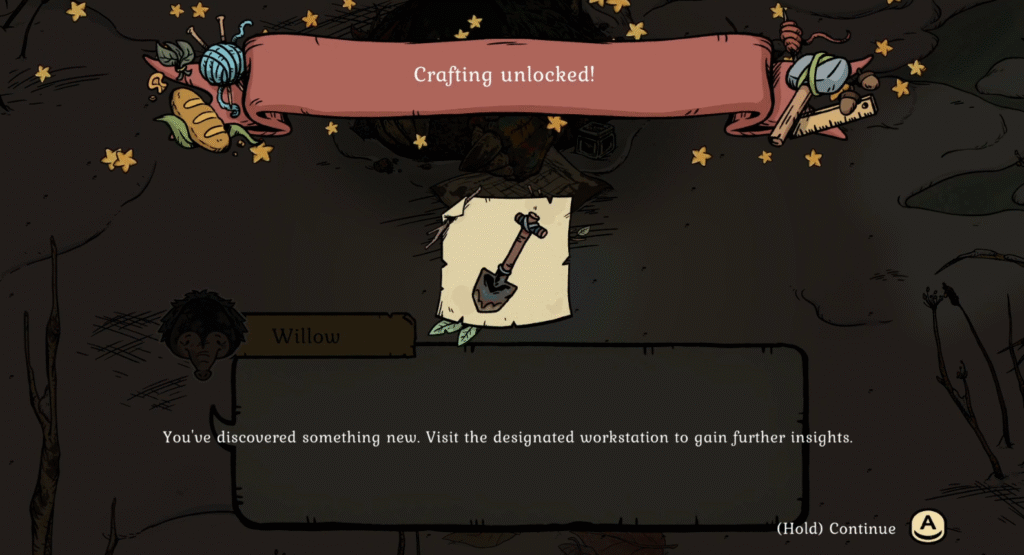 Want a real surprise? Go back to your burrow. What’s that in front of it? One of Willow’s notebooks? Well, how about that! Let’s not get too hung up on it and return to Willow. This will lead to their next quest, Find Another Tunnel Entrance, as well as them giving you the blueprint for the best shovel. Return to your burrow to craft your new shovel; you’ll need it, but you won’t have to go far to use it.