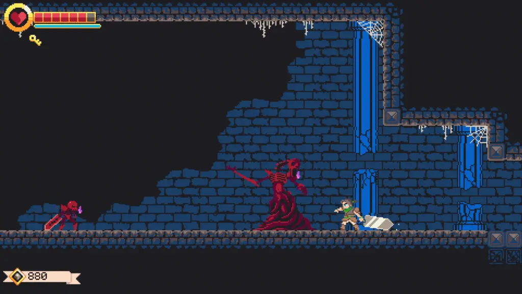 Unfortunately, as I alluded to in the opening paragraph of this review, GIGASWORD is plagued by technical issues that mounted up over my 20-hour playthrough. While none of these were game-breaking, I experienced several different issues that included misplaced collision detection that blocked side paths, floor maps having inaccurate tracking and being partially revealed before I had explored them, and my dropped loot disappearing on several occasions. There was even a moment when my character sprite got stuck in a wall during a crawl section, forcing me to quit to the main menu and lose any progress I had made since my last save. These issues were not persistent, and GIGASWORD is far from unplayable, but I found them frustrating, casting a shadow over my time with the game. That frustration is compounded by the fact that I like so much about this game, from its innovative approach to traversal, combat, and puzzlesolving based around the titular Gigasword, to its creative boss fights and rewarding exploration.