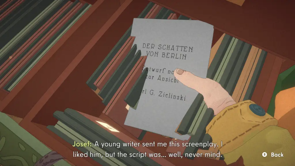Of course not all stories are quite as optimistic. While Kolja is about human connection, our next story is about the things we leave behind. Now we are getting ready to leave the apartment behind and can only bring what fits in a suitcase. Yes, we are in Nazi Germany and the world is unkind to us. Thankfully Esther is ready to help us flee before it is too late. Once upon a time we owned a movie theater, we provided entertainment, and now we are seen as the enemy. This section of the game is a point and click scavenger hunt of sorts. Will you find everything, including the optional camera before the police tear down your door?