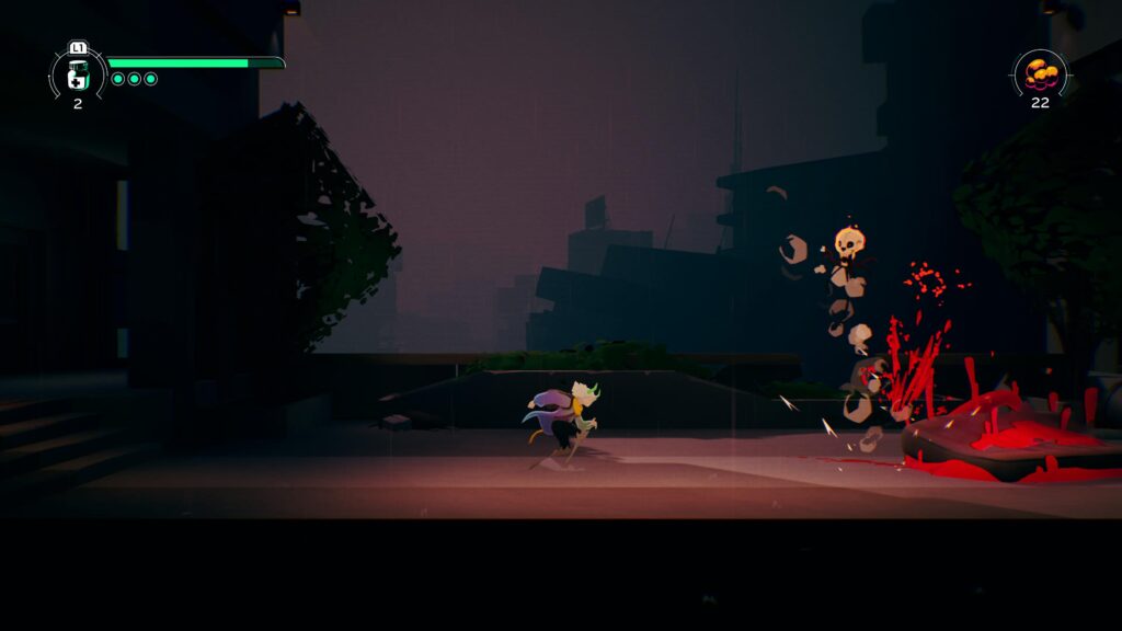 I really liked how Possessor(s) handled the combat, its weapon, and upgrades. Possessed by Rhem, you now have access to a variety of abilities (when you find them, this is a Metroidvania, of course). This includes dashing, air dodges, a lasso / grapple thing for swinging and pulling your enemies towards you. Your weapons, and upgrades aren’t specialist or some sort of demon weapons, they’re things you find in Sanzu. Your first weapons…kitchen knives. The first special attack? A computer mouse. It made me laugh, and I really liked the coming together of the two worlds, the human physical forms, empowered by the demon abilities.