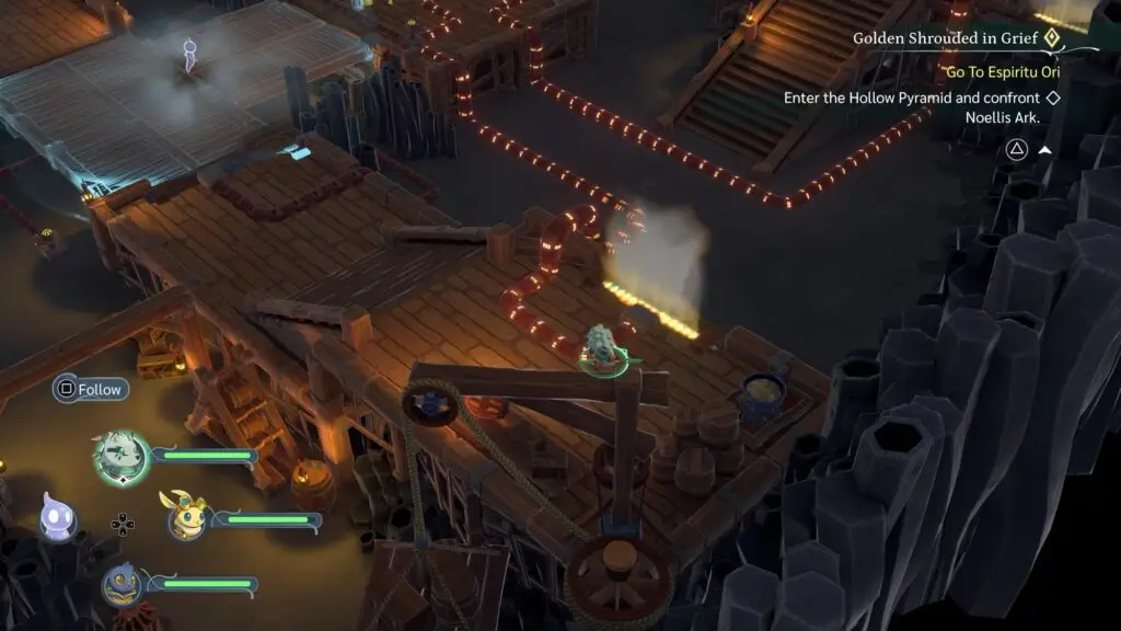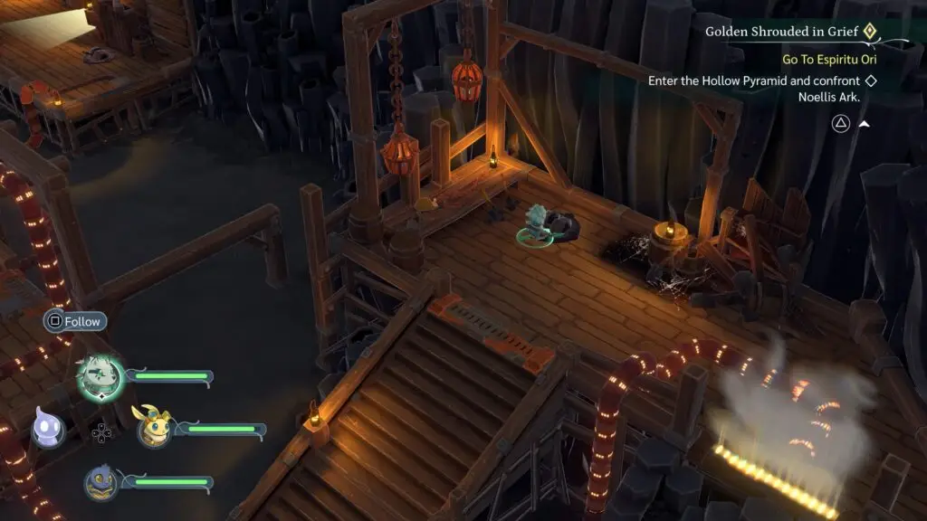 A Broken Bond(8): In order to acquire this quest, you’ll need to solve the puzzle in the room before it. The main tasks are to interact with valves that control the steam blocking your way, moving Ghost around with his ghost light to make bridges appear, and having three party members flip 3 levers simultaneously.