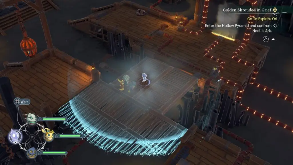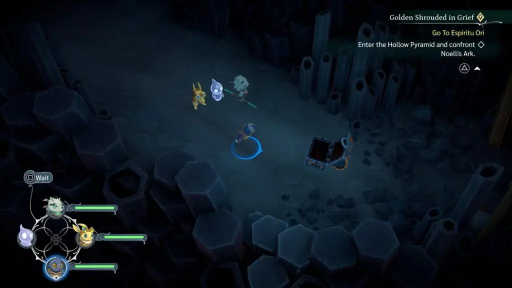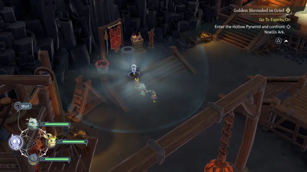 Take your party to the middle platform and switch control to Wait mode.