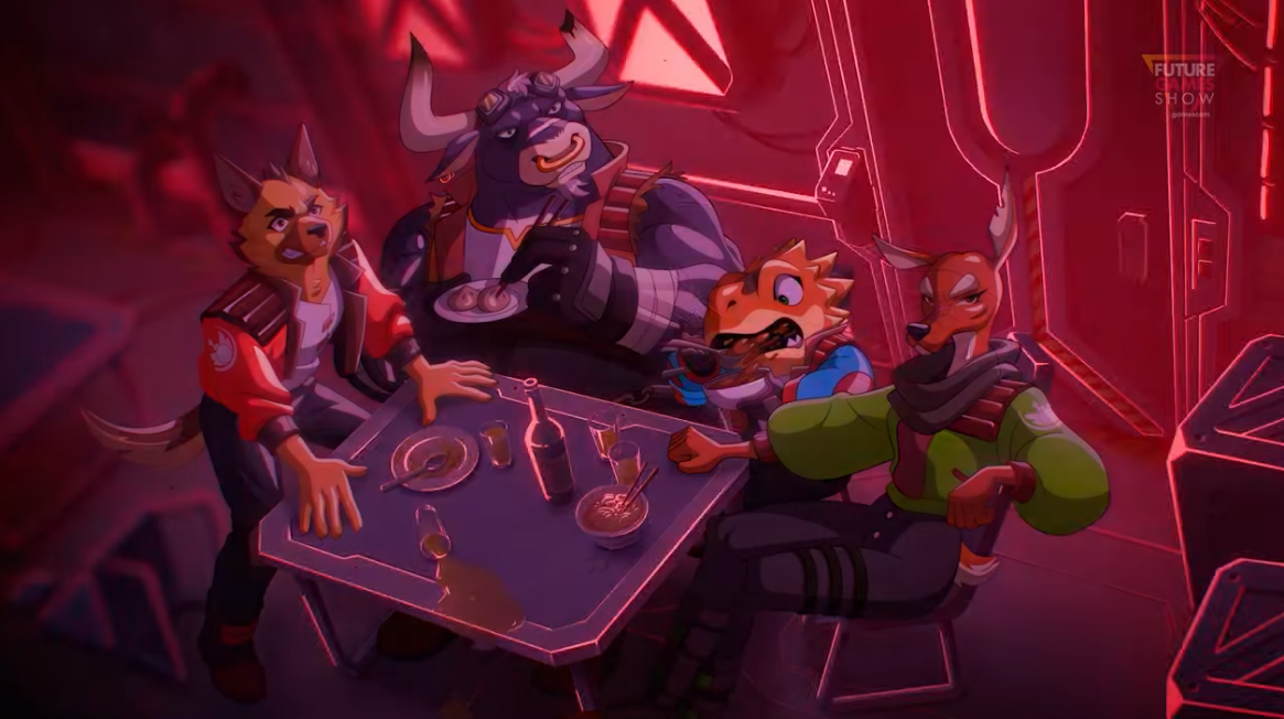 In Wild Blue Skies, play as Bowie Stray, leader of the Blue Bombers in this on the rails aerial adventure. Of course, even in Star Fox, while you played as Fox, there’s a cast of characters to round out the team. The same is true of Wild Blue Skies where the Blue Bombers are a team of other animal friends. Roe Whitetail, Thorne Prickle, and Chuck Barbacoa make up the Blue Bombers and are shown speaking to Bowie in gameplay footage.