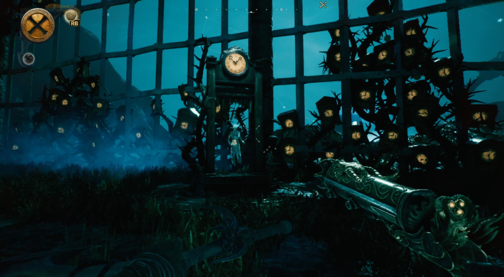 From the last guillotine, drop down near the blue coral to be back at the save point we found earlier. Now run past it along the edge of the island, or through where the large book statue is, to find the next haunted guillotine.