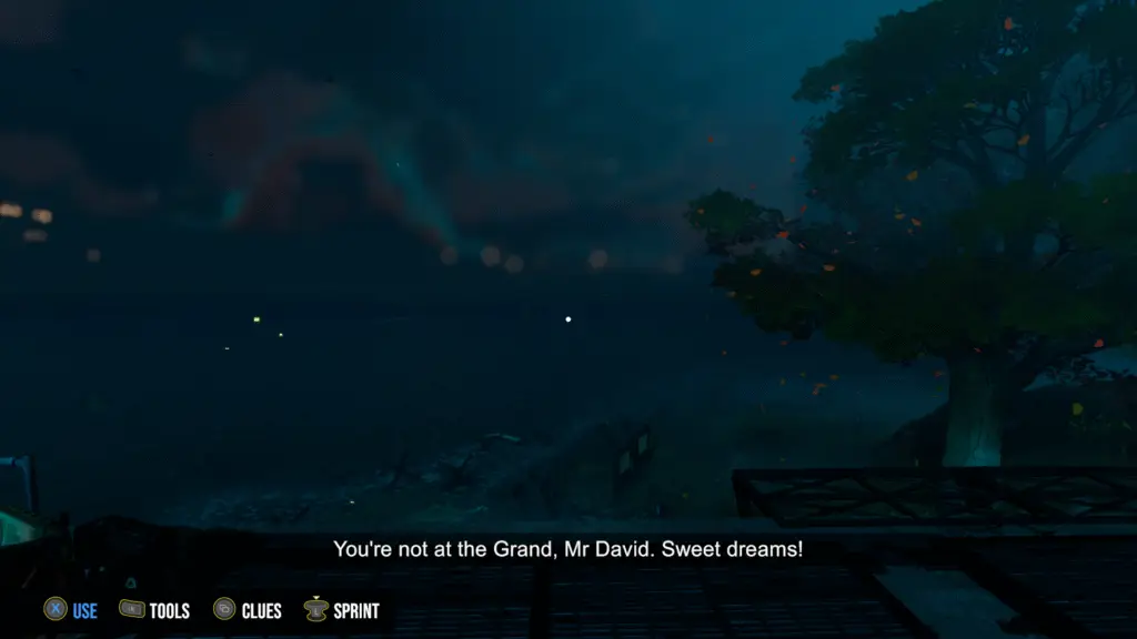 For those who might be a bit more prone to motion sickness, this is an area you may want to be mindful of. The head bob effects can already be a bit for some people, but thankfully you can turn these off. I’d recommend turning off the head bob during the driving scene. During this scene you’ll hear Maddie tell you, “there are no ghosts at the Grand.” Keep this in mind as it does almost come back to haunt us. You won’t only be driving a vespa, you’ll also need to drive a boat. Have your boating license?