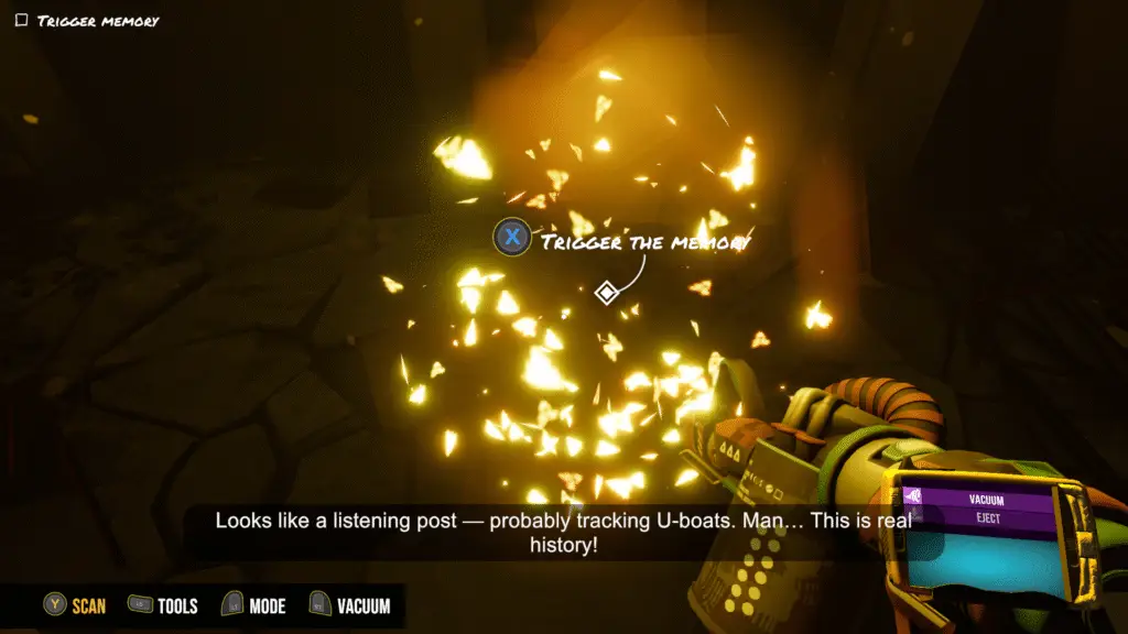 Robert C. Macbrushy tells you that in order to see the full memory play you’ll have to restore missing objects. In the demo, you’ll see the objects may exist around you outside of the memory and require moving to have you fully step into them. Once you move them into the correct area, the memory continues and you’ll be given clues to your next steps. Not everything is at it seems. These memories are seemingly World War II era, and Mr. David is fascinated, which prompts Macbrushy to call you a nerd. Something strange is happening. What are these sounds being heard on the radio if not the U-boat? What are they listening for? There’s still more to unveil across the island. There are No Ghosts at the Grand, but there are memories on the island.