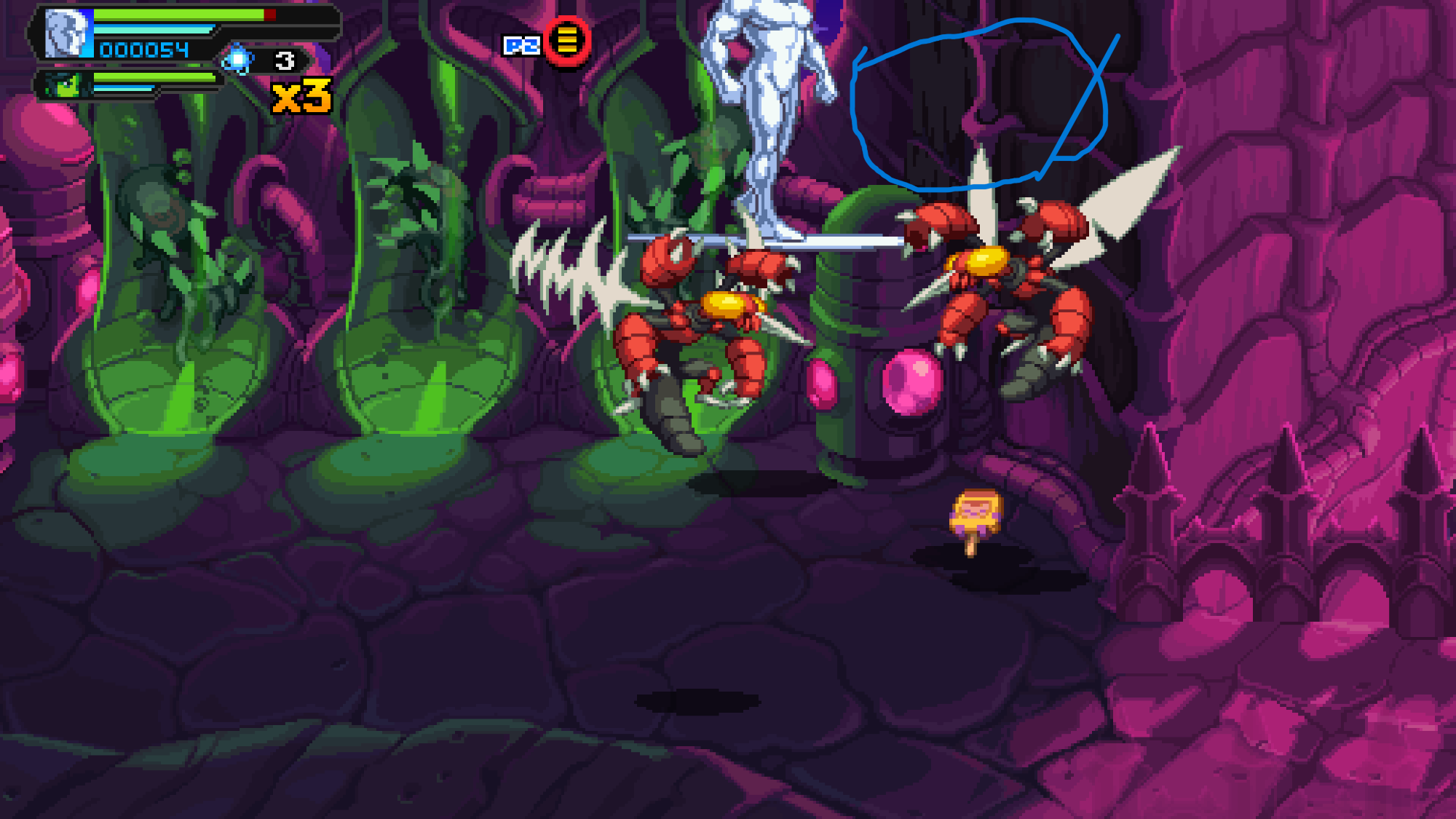You will get to a giant screen in the background display Phyla-Vell, Iron Man, and Annilus. There’s a pile of rubble in the corner to the right, and the cube is there.