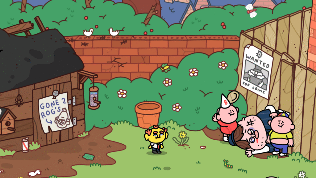 The second time you reach the garden, move to the right and you’ll see two small boys bullying Charlie. And you, you evil pig, are going to join in by punching them several times: