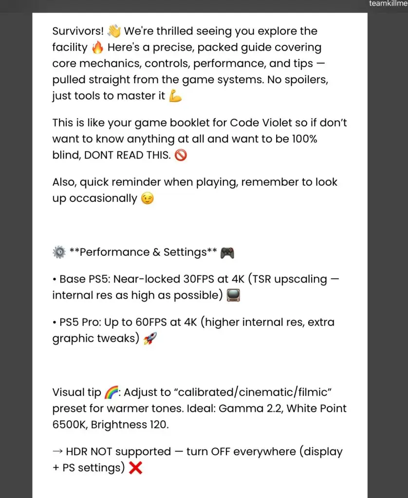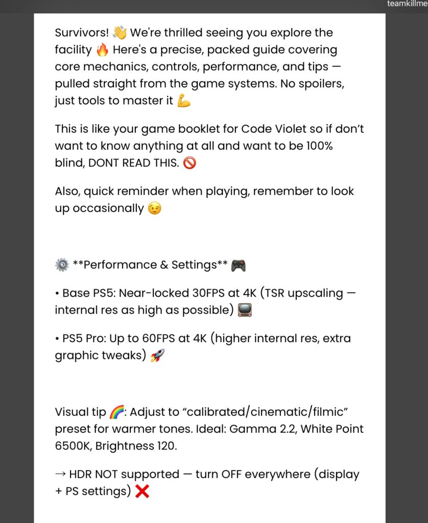 Code Violet is marked as PS5 Pro Enhanced. Based on what’s stated in their website, the pro allows for 60FPS at 4K. I played this on the PS5 Pro and I did have decent performance with no real visible hiccups besides some pop-ins and weird collisions. Other notable features includes haptic feedback and slight usage of the adaptive trigger. The adaptive trigger is shallow and not worth mentioning, however the haptic feedback at least had different feedback based on the surface Violet runs on.