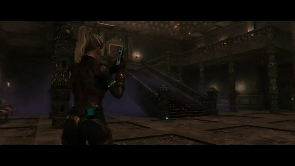 Interact with the big picture frame on the top of the stairs and it’ll open up a “hidden” passage. You’ll need the Secret Key to access the next area. Upon opening it, you’ll see the weapon you need on the pedestal.