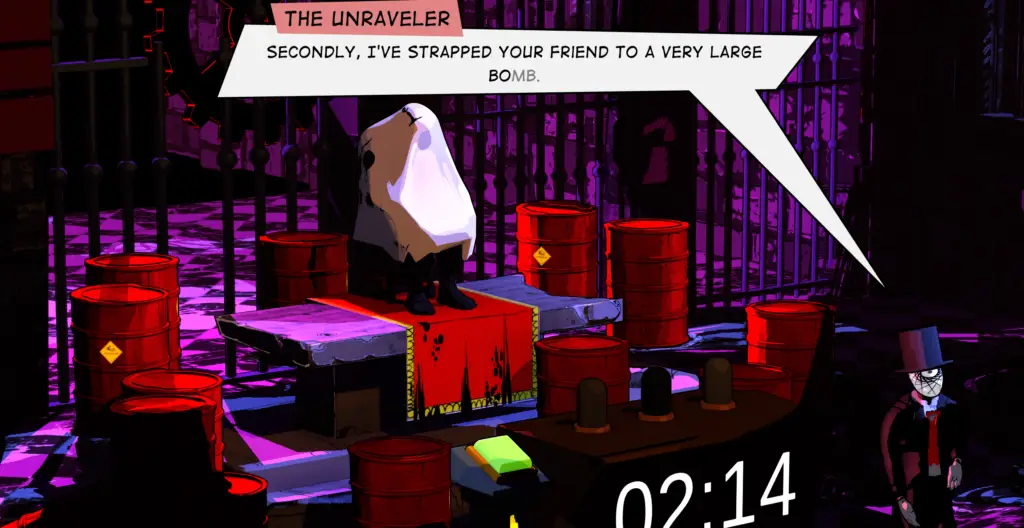 Now – why does this matter? Well, The Unraveler has given us two minutes to disarm a bomb that an unknown individual has been strapped to. Simply hit three buttons on the map and you’ll be right as rain. Here’s the problem though – it is not nearly enough time. Thus, we use time travel.