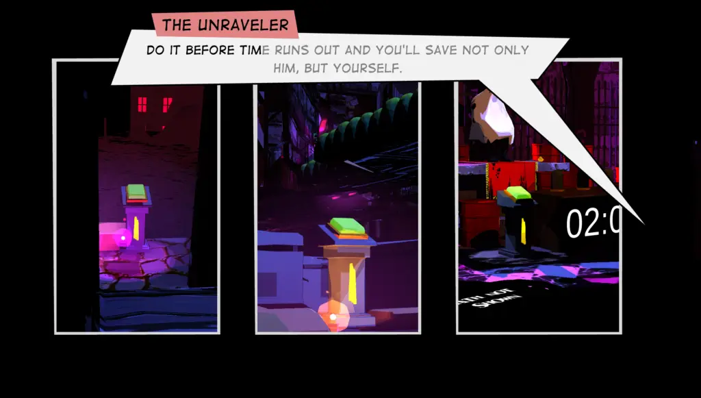 I have played games before where there is a time-travel mechanic when it comes to solving puzzles. From Braid to The Legend of Zelda: Ocarina of Time, I’m no stranger to these game mechanics. That being said though, this title does provide a unique twist on this mechanic with the ability to REALLY manipulate time. And here’s the added perk – you get a scoring based on how quickly you resolve The Unraveler’s trap. So, the replay value is 100% there.