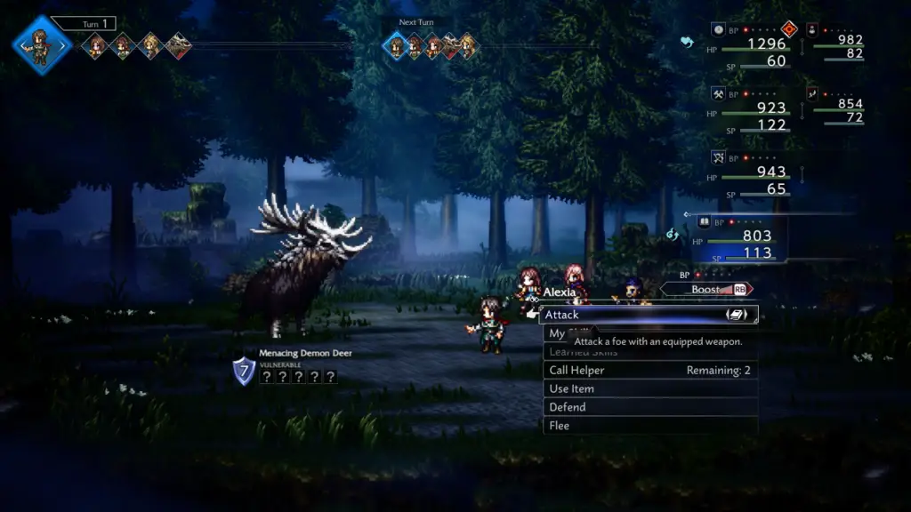 There’s a sense of flow to battles: the difference between a desperate defensive turn, a calculated set up, and a perfectly timed multi boost damage window. For players who like to earn their big moments through planning instead of outlevelling the numbers, this remains one of the most satisfying turn based systems in modern JRPGs.