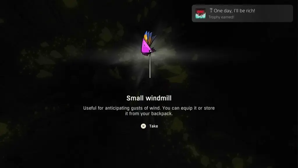After handing them in to the gem miner, not only will he be super duper ecstatic, he’ll also reward you with a Small Windmill! This will reward you with the trophy for completing this gem quest, “One day, I’ll be rich!” as well as “Wind Whisperer.”