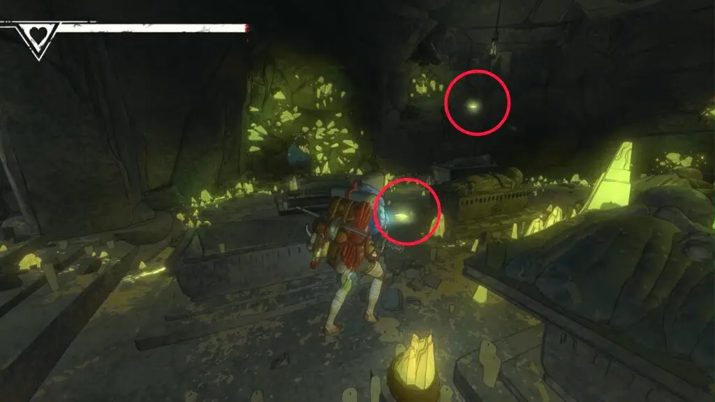 Making your way down, you can grab your first taste of the gem here. Once through, you’ll be met with the diligent gem miner. He has dreams of getting riches, and he’ll take whatever help he can get.