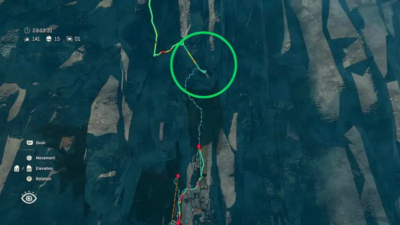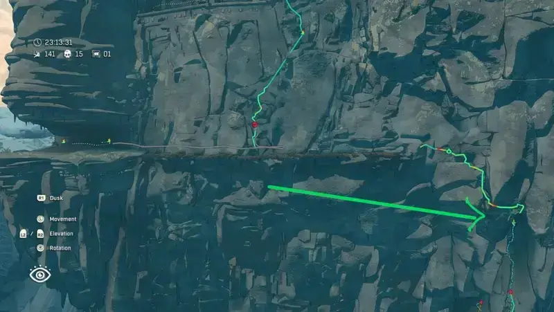 You can find the location here, though I attempted it in several ways, as I kept failing. The one on the left was my initial attempt. However, I ran out of resources and decided to head up and rappel down towards the hidden cave instead. As usual, in Cairn there are always more than one way to tackle the climb.