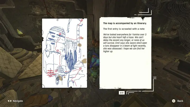 In the cave, you’ll find poor Yamina, as well as her lynx origami. Now that it’s in your backpack, it’s time to reunite her with her team.