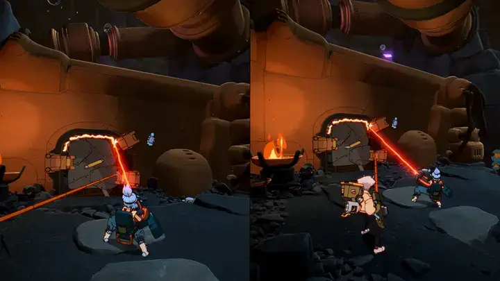 Originally announced at last year’s Game Awards, this new trailer gave us a chance to see a few of the gadgets that our space-faring duo, Maki and Omura, will use on their 90s anime-inspired adventure to save their home from a cosmic storm. We saw the scraphook, which can be used to move platforms, the Liquid Launcher that blasts water to activate mechanisms and cool down surfaces, and the Beam Cannon, which is used to melt obstacles, open doors, and more! We also caught a glimpse of these tools being used in tandem, with one character heating a piece of metal while the other used the Scraphook to bend it.