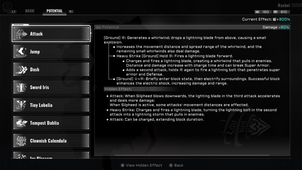 Potentials are the character specific layer, tied to each avatar’s signature kit. These upgrades do the more flavourful work for each character: boosting damage, speed, and range, unlocking follow ups, extending invulnerability frames, and sometimes adding transformative effects like HP regeneration on hit. Because every character’s baseline rhythm is different, Potentials naturally create new strings and combos that feel bespoke, not generic. Over a long run, they are what pushes a character from “I understand their buttons” to “I have built my own version of them”.