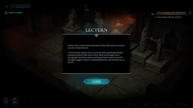 “The two elves wished not to converse with the unshakeable Death, sealing the fate of their dear friend. What she thought was a strange gift turned out to be a warning of what was to come, for the eight-legged creature creeping behind her would show her no mercy.”