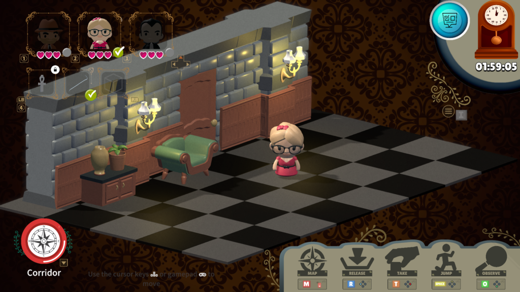 The other aspect that is a bit frustrating is that after the first 20ish minutes, some characters aren’t where they are supposed to be. This does mean if you are looking for a specific person, you may waste time looking for them. In a house that is so large, this feels even more frustrating with no way of knowing where they may have gone. There are no hints to where they are. Instead you may have to just hope you come across them as you search the 160+ rooms for clues. It is quite a bit for a two hour time frame where you have three characters to control.
