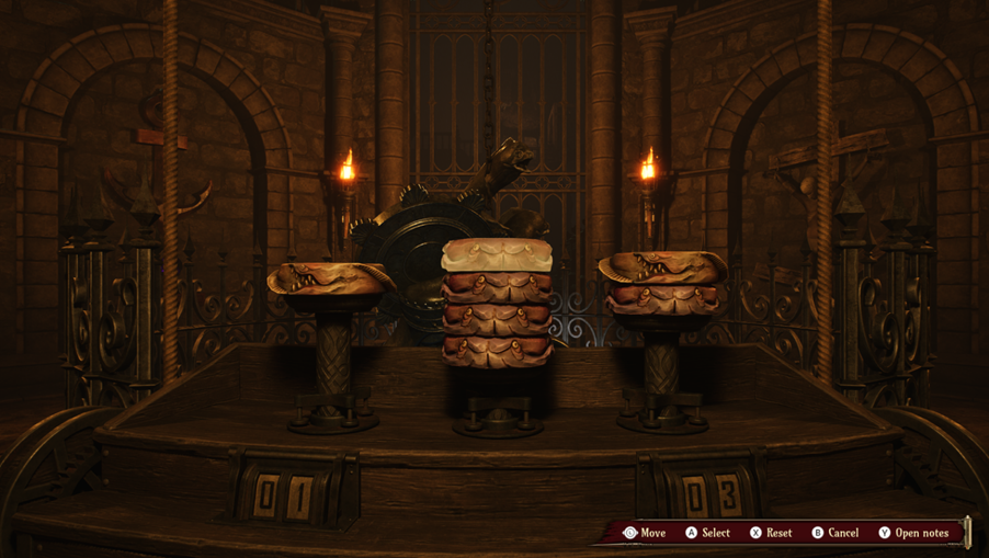 Late in the chapter, after solving The Sun Puzzles, you will re-enter the tower itself. Inside, on three different levels, are three separate scale puzzles. In the tower, you will see a note from Marea which says, “Every fallen soul shall be weighed upon the scales of the Abyss. And only those who find balance shall be deemed worthy of redemption.” Whilst this is your clue on how to solve the puzzles, when you see them, the logic is simple to understand.