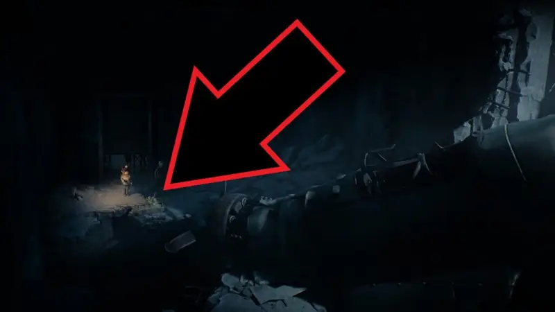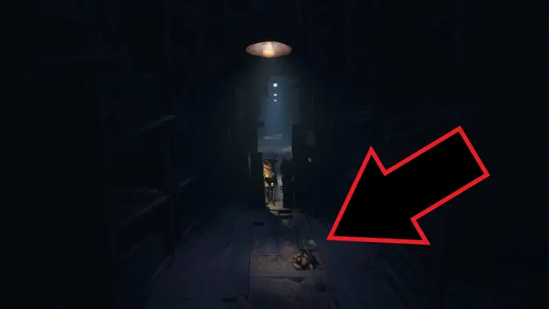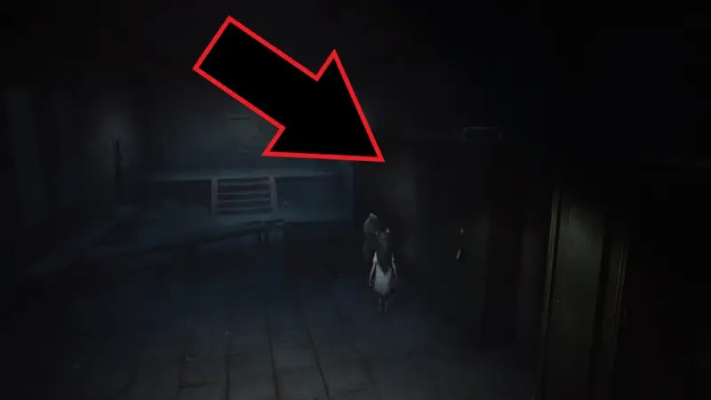 After the fight, you’ll shimmy through a gap and go through a door into a long corridor. Move towards the camera to find another gap as the camera moves back to reveal another secret room.