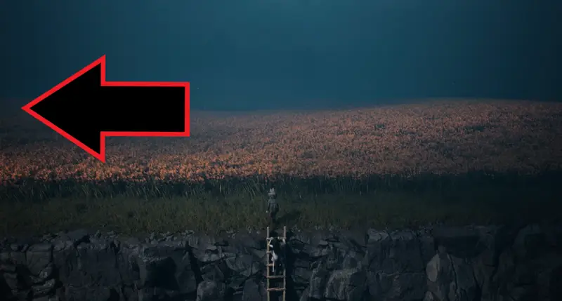 Run to the left-hand side of the field, and keep your eye out for a scarecrow in a small clearing.