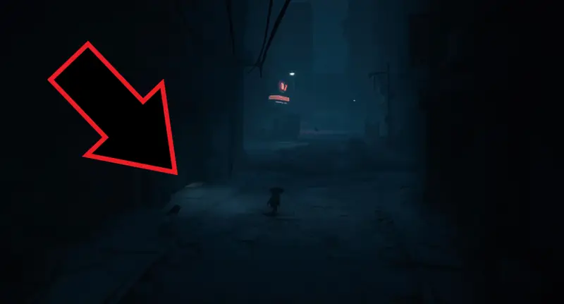As you run to the right to progress, you’ll see/hear something running away from you. Follow it down past the bus stop to find a boarded-up door.