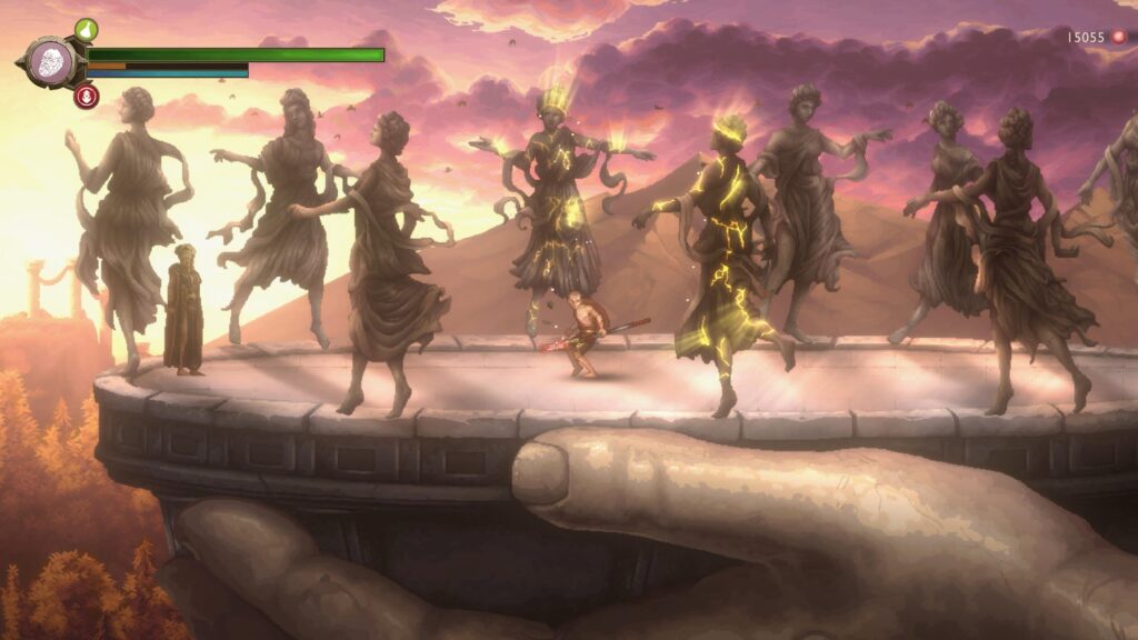 I described the gameplay elements in detail in my first impressions. Most of what I outlined there remains the same as I played through. In short, it is a marriage of the God of War reboot’s weapon and adventure system in a 2D world. The platforming, puzzles, as well as the gear and skill progression found in the reboot are present in Sons of Sparta. In retrospect, metroidvania is the perfect genre for God of War’s foray into 2D.