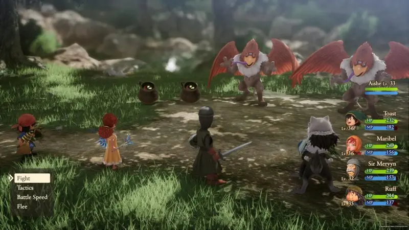 Speaking of avoiding battles, DQ7 Reimagined doesn’t have random battles, except while travelling the ocean by ship. Initially introduced in Dragon Quest 8, Reimagined (and the 3DS DQ7 Remaster) has the enemies visible on the over world and dungeons, allowing you to avoid them if desired. They’ve also implemented the ability to attack and defeat them without entering the battle if you are much stronger than them, saving lots of time but with reduced experience points and vocation proficiency points. This is a great Quality of Life addition, allowing you to better control when to fight and control the speed of your progression.