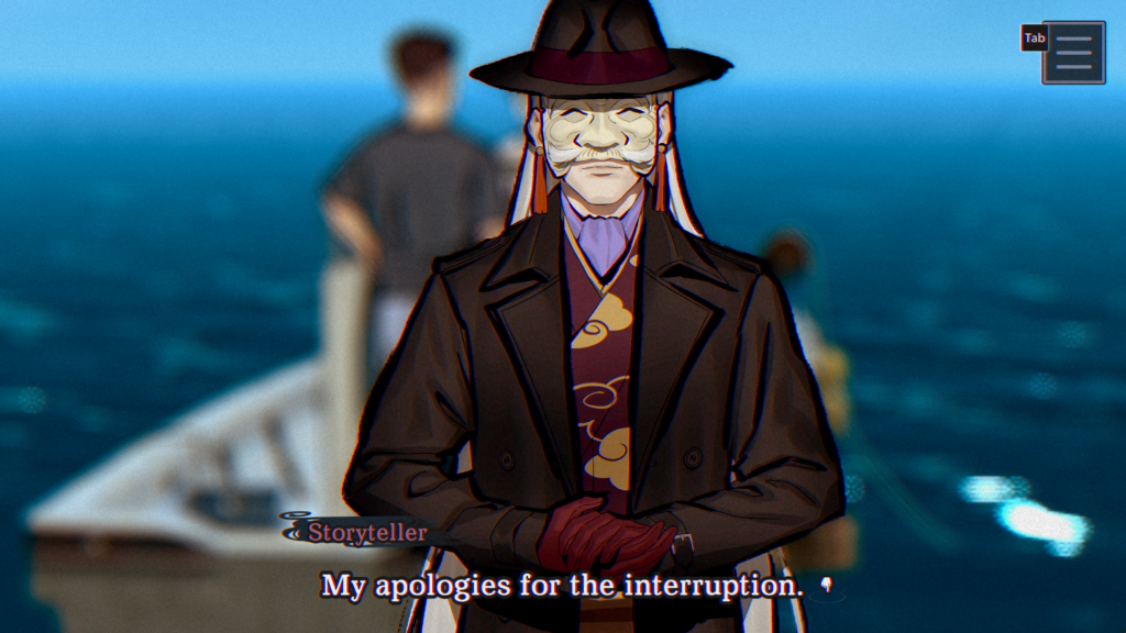 Despite the fact that it is a visual novel, there is just a little bit more than reading and making decisions. Yes, of course that is the majority of the game, but the introduction of controls needs to be mentioned. While many games give you a quick tutorial that can seem disjointed from the game, the game controls are actually part of your introduction to the Storyteller. Not only will he be a bit of a guide, he will also ensure that you know how to play the game. Quite a lovely gentleman. He’ll even give you kudos as you go through the tutorial! It’s a nice touch to get you acquainted with the basic controls.