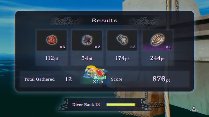 I enjoyed this minigame so much, it requires its own discussion. Yuza is out on his first official dive and you get to control him along the way. However, the diving isn’t just at the beginning of the game and you thankfully aren’t locked out of the diving as you progress through the story. Once you unlock the Story Chart, during breaks in the story you can always come back to the mini game. Perhaps you are a collector of sorts wanting to get the achievements, perhaps you just want to beat your best score. Whatever your motivation is, the diving mini game is actual fun and relaxing as long as you don’t let your oxygen run out.