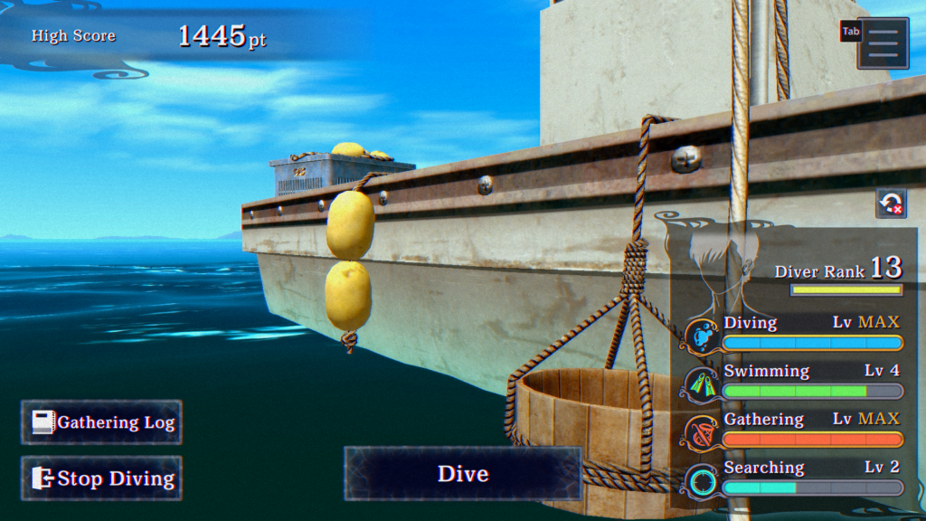 The game is simple, dive, look for sea life to collect and bring with you to the surface before you run out of oxygen. The more you collect, the higher you score, and the higher up your diving rank goes. As you rank up you’ll also be able to increase some of your diving abilities. This will make your future dives easier to allow you to find different sea life, stickers, and a life changing…