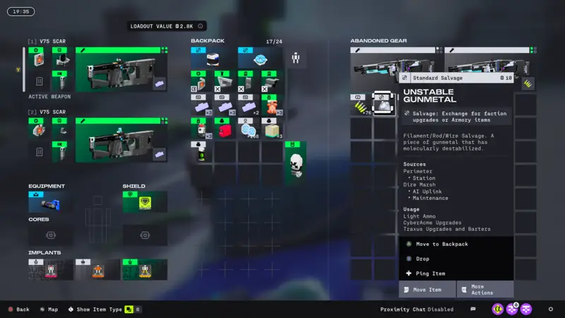 In the case of looking for ammo however, the specific item you will be looking for is Unstable Gunmetal which can be bartered with the CyberAcme faction. While it is fairly rare to find anytime you do find it out on the run it is definitely worth keeping if you are looking for more ammo for future runs.