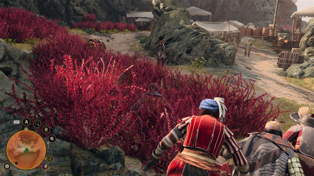 Attack the baddies, talk to baddies through diplomacy, or stealthy rescue the fisherman. Attacking them is the most straightforward, of course. Using stealth will require you to avoid the enemy’s gaze by hiding from bush to bush, as well as successfully rolling past the stealth check. Lastly, you can diplomatically ask them to release him. Doing so will require you to find them some treasure within some ruins.