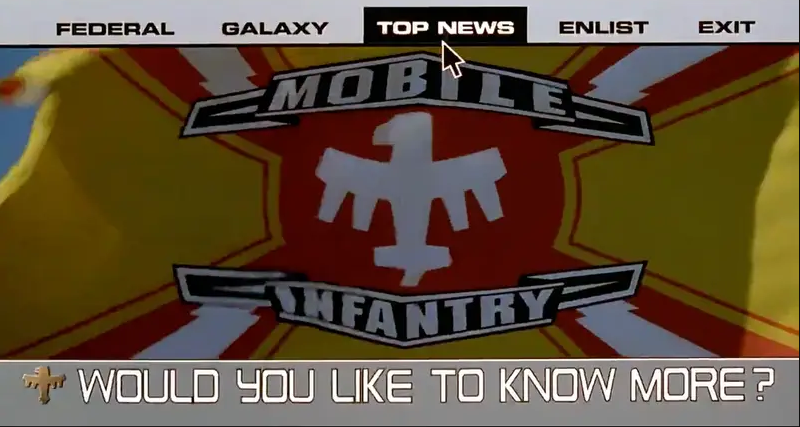 “Young people from all over the globe are joining up to fight for the future. They’re doing their part, are you? Join the Mobile Infantry and save the world. Service guarantees citizenship.” – Fed Net Announcer