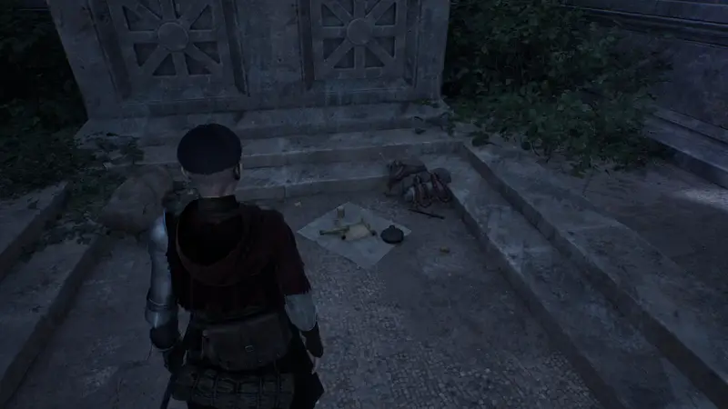 Head down into the arches and drop down. Here you’ll spot a body next to a blade for you to collect.