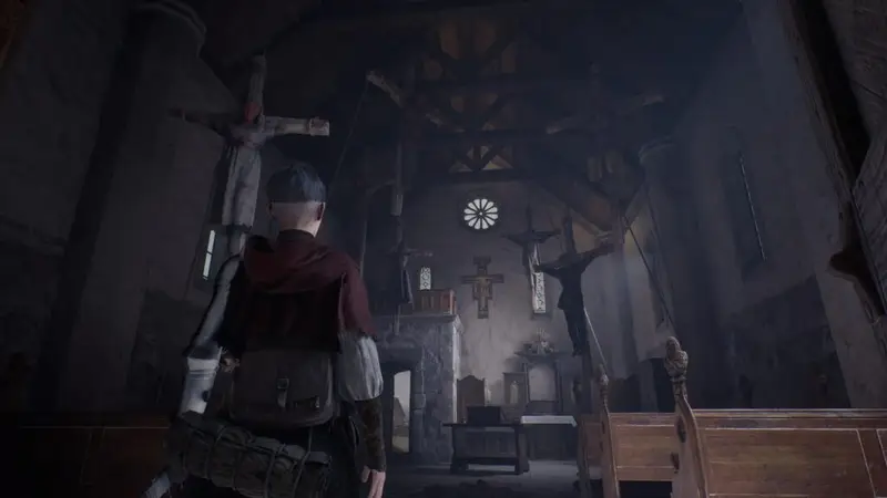 She is the face of humanity in the face of some unspeakable horrors, both in terms of the actions of the Flagellanti, the raiders who are butchering innocents, and the unfortunate consequences of a Europe plagued by the ‘pestilence’ a disease that is ripping through the populace. Given that the game is set in 1348, we can assume that this is the Black Death, or the bubonic plague. White crosses adorn the door ways of plague ridden residents and should feel familiar for any Plague Tale fans. Occasionally, you’ll happen upon wrapped corpses (plural) or fly-ridden horse cadavers. Painting a pretty grim picture of what ravages folk are facing.