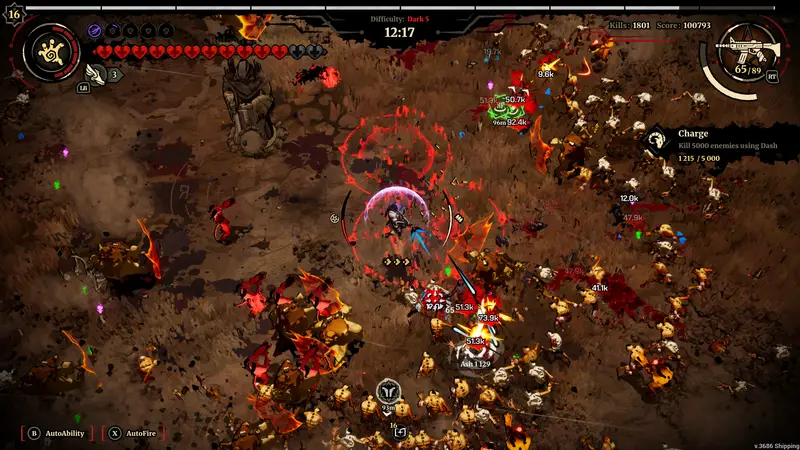 On a technical aspect, I do really wanna praise this game. Even with all the different effects going on and the amount of enemies on screen, I didn’t have any dips in gameplay until I got to the last biome. I’m used to these games taking a steady hit later on in the game when everything is going crazy, and you have trouble even finding your character, so not having to deal with that here all the time was a real relief. The issues I did have on the last biome could be easily fixed as well, as the issue likely stems from the sheer number of enemies that pop up out of the ground. This mechanic is not used in either of the other biomes, so not really sure it needed to be used here.