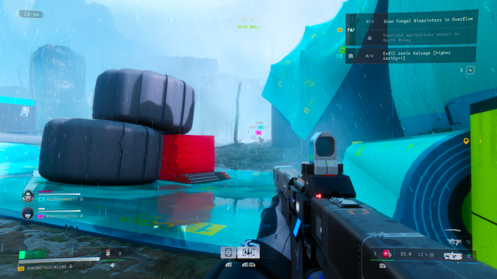 I feel like I’ve had, and am getting a lot of personal growth whilst playing Marathon because I’m having to face these personal quandaries head on. I absolutely need to head to North Relay and explore for those materials, as that’s my current contract. Please come with me, you acknowledged?! Perfect. Let’s do it! Oh crap, Runners! Pings, pings everywhere. Keep going, don’t die. Bah, the sneaky invisible one got me. Oh crap, I’ve been remotely rezzed by the Triage guy! Legend! Oh crap, reinforcement robots just spawned in, run, run….Is it over??? Wait, I can still hear footsteps above…
