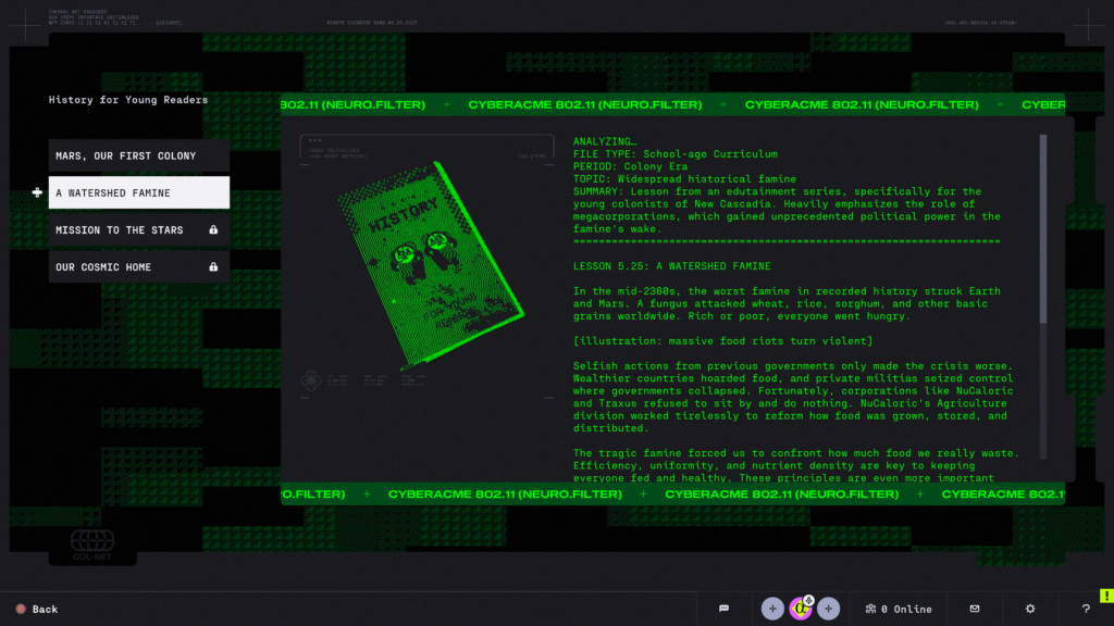 As it stands, Earth is full of mega-corporations and dodgy groups of ‘Factions’ looking to make a credit or two (where do they get their ideas?!). With that in mind, they send you, and plenty of other ‘Runners’ to Tau Ceti IV. They want you to grab all valuable items, data and resources. Of course, you’re not physically going, as you’re a Runner, you’ve given up your physical form for enhanced cybernetic ones. Your mind is placed in a ‘shell’ body that makes it easy to replicate you, should something…unfortunate happen. And believe me, it will.