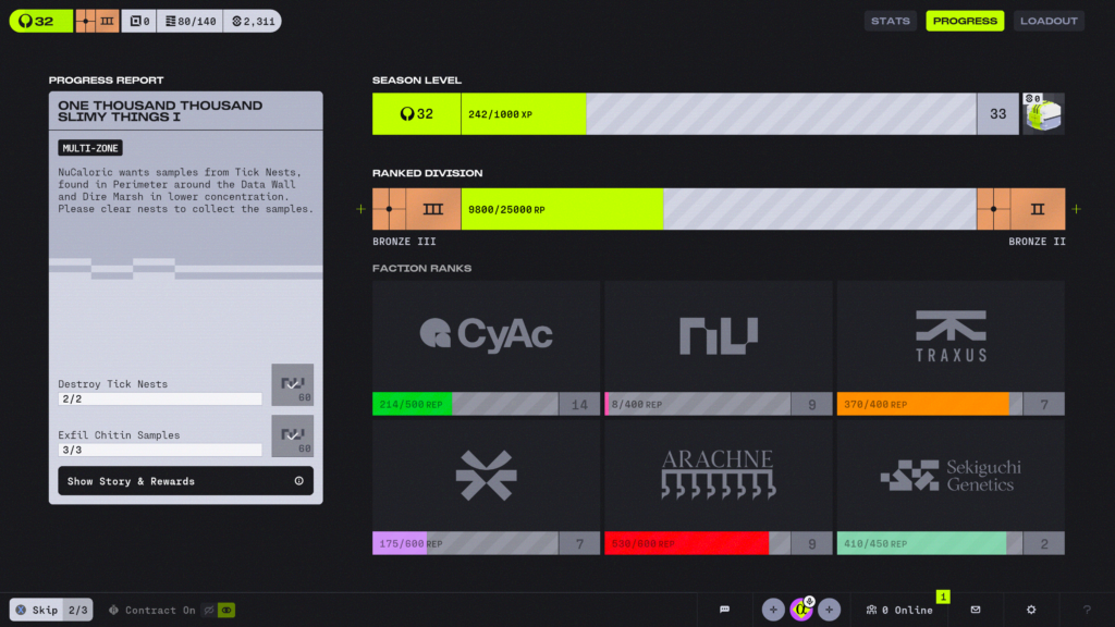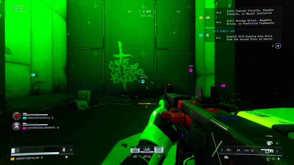 These contacts have you seeking out specific terminals / enemies / locations in different areas of the game’s maps. Some are map specific, and others are ‘multi-level. Single Run contracts require you to complete all the contracts requirements in one run, without dying. Some need you to successfully exfiltrate too. These can be tricky to do, as you’ve got the unknown of Runners, and reliable team mates. You also get little direction to where some of the objectives are, at least I thought until I spotted a video on YouTube that indicated you can actually find out more specifics by hovering over each ask!