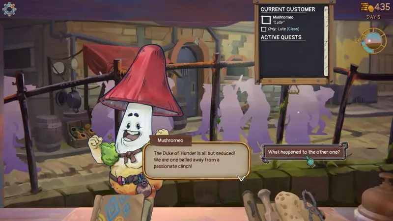 Each action, such as chiseling, cleaning, and upcycling takes up a predetermined amount of time, while performing customer service, does not. It’s your goal to plan out what you want to accomplish in your limited time. However, it doesn’t really matter, even if a customer requests an item from you and you don’t want to deal with it and would rather just tinker away in your workshop, you can totally ignore them or tell them to go away without any repercussions. If a named NPC asks you for a specific item, you can tell them to come back later once you have the item they desire. No rush.