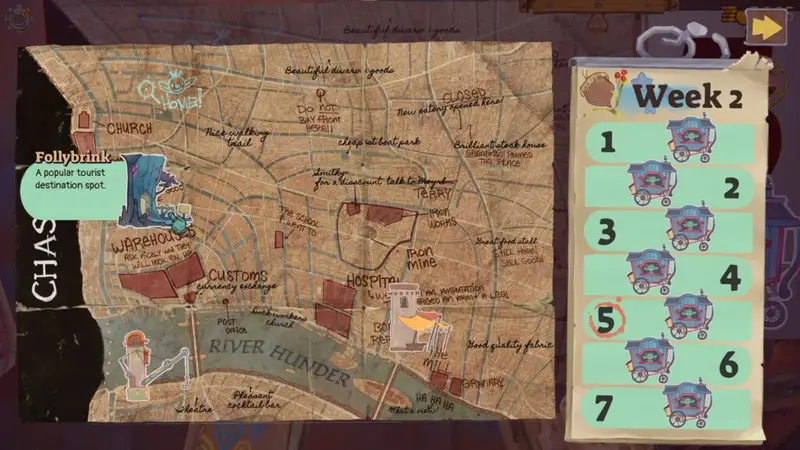As you progress through the story, you’ll eventually have the ability to travel to different parts of the town allowing you to sell whatever you have in your stash to the townsfolks. Initially it starts with 2 visits per week, but will eventually increase to everyday.